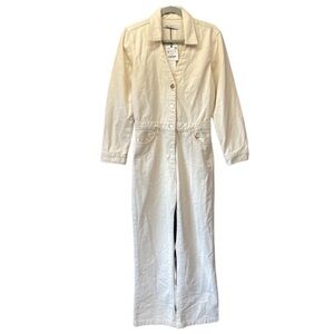 NWT Zara Cream Denim Gold Button Long Sleeve Jumpsuit Sz M [1]