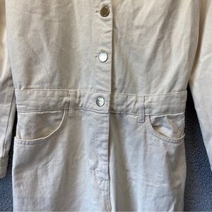 NEW Zara Cream Denim Gold Button Long Sleeve Jumpsuit Sz M [1]