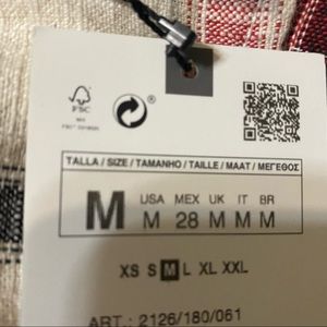 Zara Overshirt Shacket Italian Fabric Jacket, NWT, Size Medium, White, Red and Black Plaid. 2 front chest button pockets, 2 side slit pockets, 92% cotton 6% polyester 2% other fibers. Approx measurements laying flat; chest armpit to armpit 25”, length 27”, sleeve outseam 20”, sleeve inseam 17”.