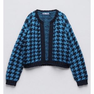 - Ribbed hem, ribbed cuffs, ribbed front placket, open front, houndstooth, unlined