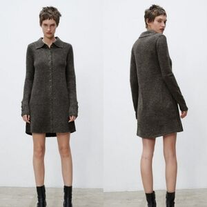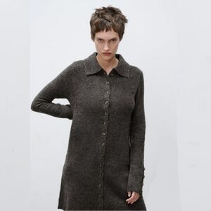 Zara knit dress with polo collar and button front. Button details on sleeves. Color is anthracite grey. Super soft material. Style 9598/007. Sold out online.