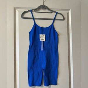 NEW Zara Limitless Contour Jumpsuit Romper Onesie Ribbed Blue Size M/L NWT