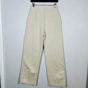 Zara Linen Wide Leg Trouser Career Casual Taupe Pant Pants - S