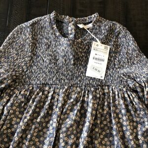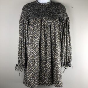 NEW Zara Mini Floral Smocked Romper Long Sleeve XS Built-in Shorts Mini Dress