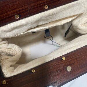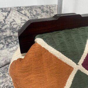 NEW Zara Multicoloured Geometric Woven Knit design Clutch Bag with wooden frame handle, inside slit pocket, hinge closure, lined