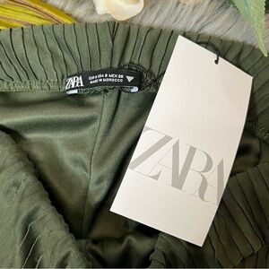 NEW Zara Olive Green Flared Rib Women’s Lettuce Hem Pull On Pants Sz S