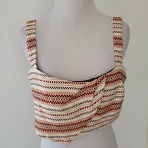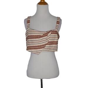 NEW Zara Origami Jacquard Crop Top Tank Sleeveless Tribal Knit Off White Large