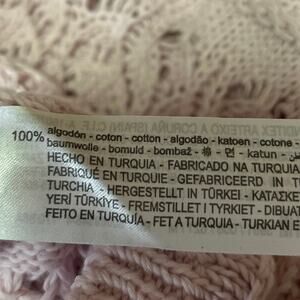 NEW Zara Pink Crochet Collared Tie Keyhole Open Knit Short Sleeve Sweater Top Size M