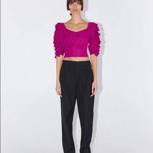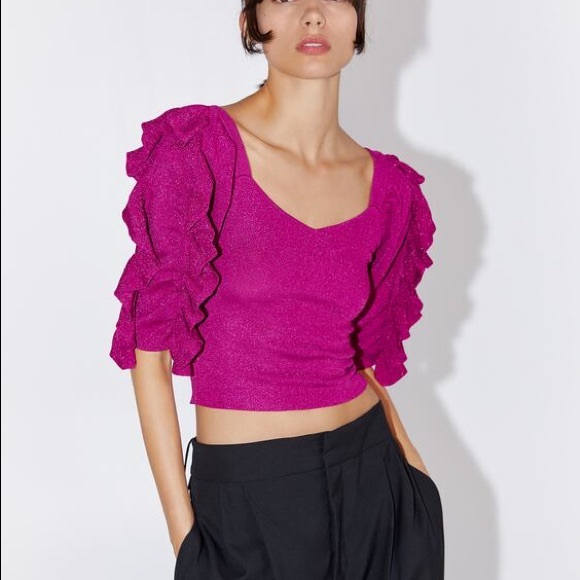 NEW Zara Pink Raspberry Ruffle Puff Sleeve Top