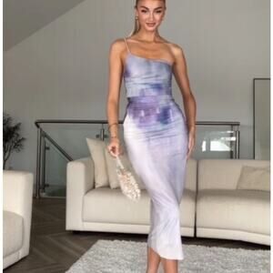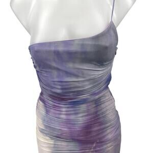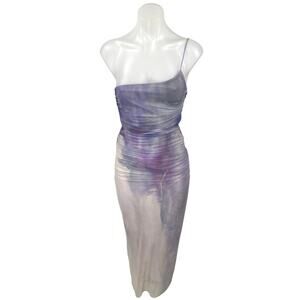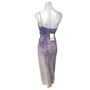 NEW Zara Purple Lilac Tie Dye One Shoulder Sleeveless Ruched Midi Slip Dress XS