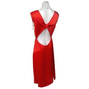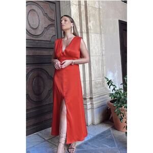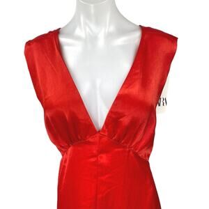 NEW Zara Red Satin Silk Sleeveless Deep V Neck Slit Cutout Back Maxi Dress Sz L