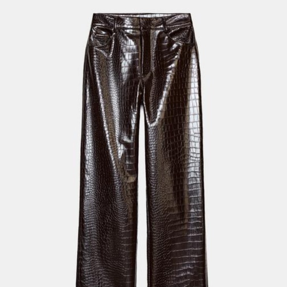 NEW Zara STRAIGHT-LEG FAUX LEATHER ANIMAL EMBOSSED PANTS M