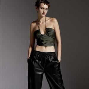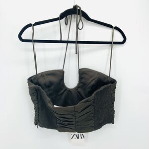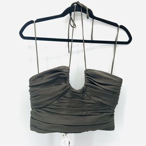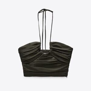NEW Zara Satin Effect Draped Halter Top Womens M Crop Green Club Dance Date Glam
