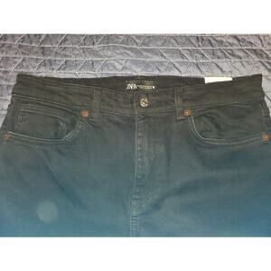 NEW Zara Size 12 (32x26) High Rise Cropped Flare Raw Hem Jeans Black