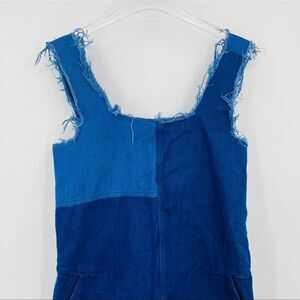 NEW Zara Size Small Denim Patchwork Raw Hem Nona Sleeveless Overall Romper