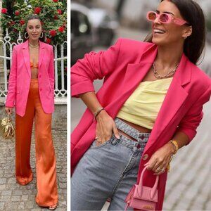 NEW Zara Straight Blazer Jacket Oversized Influencer Favorite Fuchsia Pink Chic