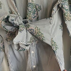 NEW Zara Striped & Floral Front Knot Shirt, Size M