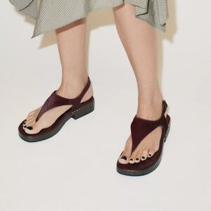NEW Zara Studded Leather Sandals in Burgundy Red - US 10