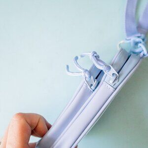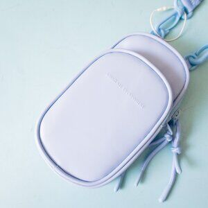 Features: Light pastel blue double pocket vinyl cross body adjustable strap mini phone sized bag. Brand new without tags--no flaws. See photos for more details. All measurements are shown in the photos. All offers welcome!