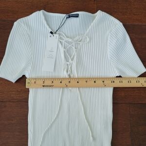 NEW Zara White Ribbed Lace-Up Short Sleeve Slim Fit Crop Top Women's Size M