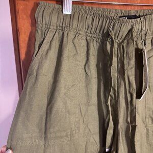 NEW Zara Wide Leg Linen Pants - Flowy Green Drawstring Lightweight Pant (Size S)
