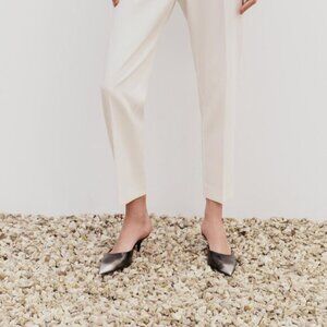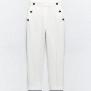NEW Zara Women's BUTTONED STRAIGHT LEG PANTS White
