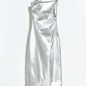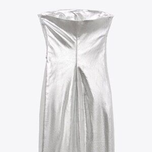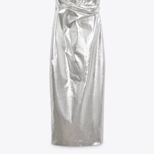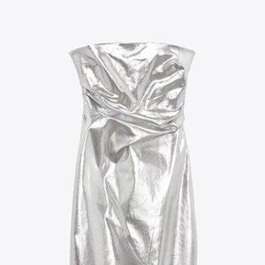 NEW Zara Women's METALLIC STRAPLESS LONG DRESS Silver