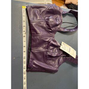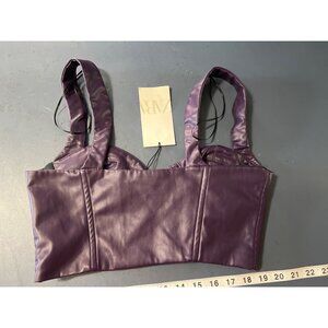 NEW Zara Womens Purple Faux Leather Bustier Crop Top SmallZipper Side Closure