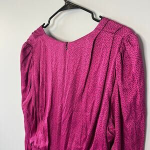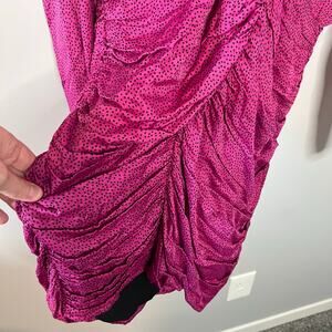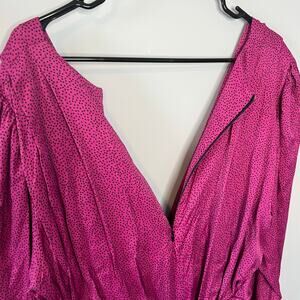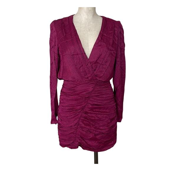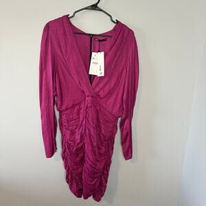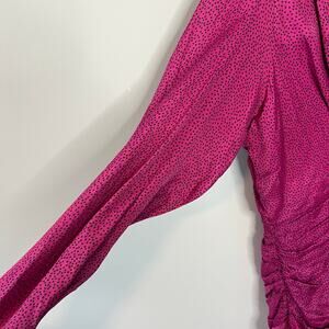 NEW Zara Women's Ruched Satin Effect Print Wrap Dress Fuchsia Pink Size XL