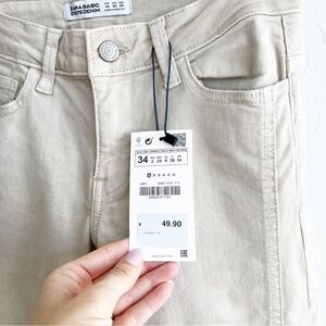 New with tags - Zara Moto jeans. Stitching detail with zippers at the ankle. Beige color.