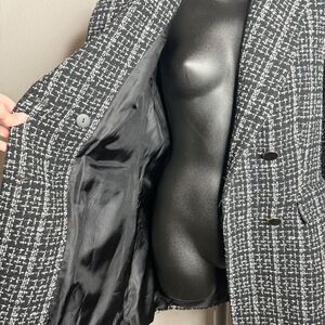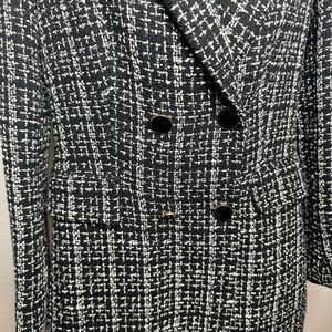Zara black plaid tweed double breasted longline blazer jacket size small NEW
