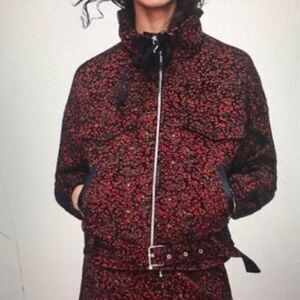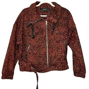 NEW Zara red animal print jacquard belted bomber jacket size medium