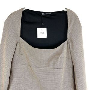 NEW Zara square neck plaid mini dress Sz L school academia