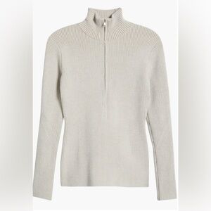 NEW Zella Après Ski Half Zip Ribbed Ivory Merino Wool-Blend Sweater- Size XXL
