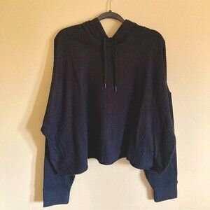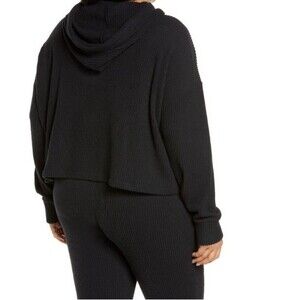 NEW Zella Nordstrom Sloane Cozy Ribbed Black Hoodie Cropped Sweatshirt Size 2X