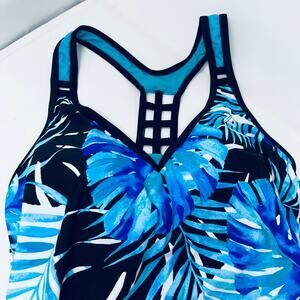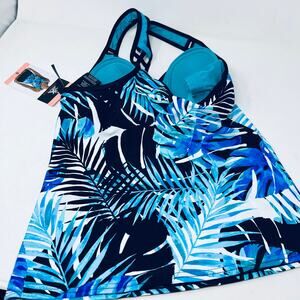 NEW! ZeroXposure UPF50 Tape Action Tankini Sun Smart Floral Palm Swim Top - S