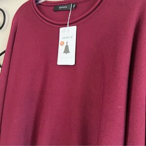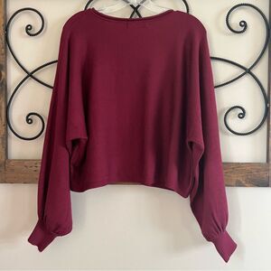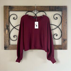 NEW Zesica Wine Ballon Sleeve Cropped Oversized Sweater Size XL
