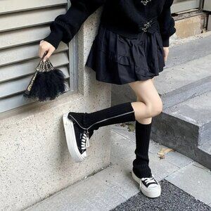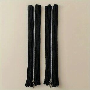 ~Trendy Black Zippered Rib Knit Leg Warmers