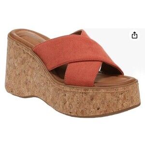NEW Zodiac Womens Nessa Wedge Cork Platform Sandals Slides Faux Suede Size 9 Orange/Coral Boho Sandals. NWOB Made in the USA or Imported