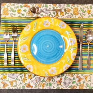 Add a splash of fun to mealtime with this adorable pair of handcrafted placemats featuring vibrant zoo animal stripes! Made from 100% cotton, these reusable and washable mats are ideal for the kids' table or your pet’s feeding station.