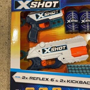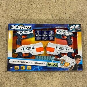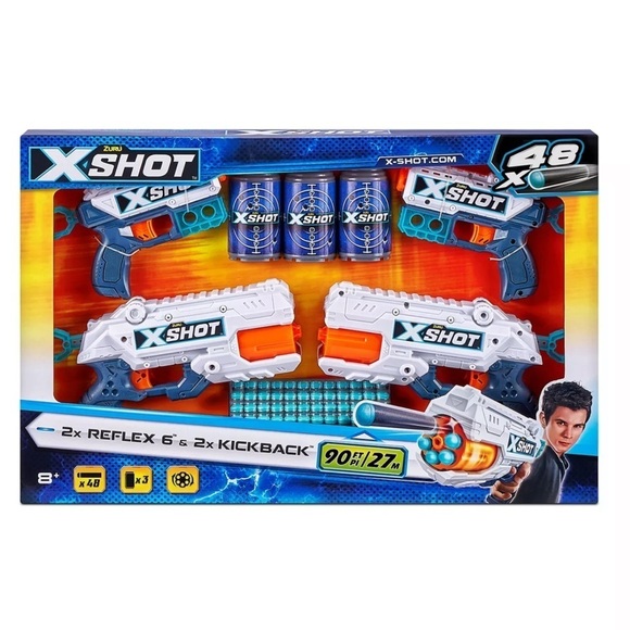 2x X- Shot Kickback 2x X- Shot Reflex 6 3x Cans 48x Darts
