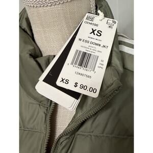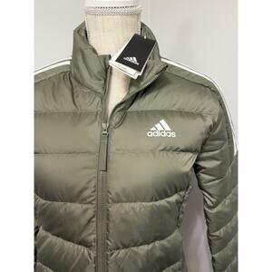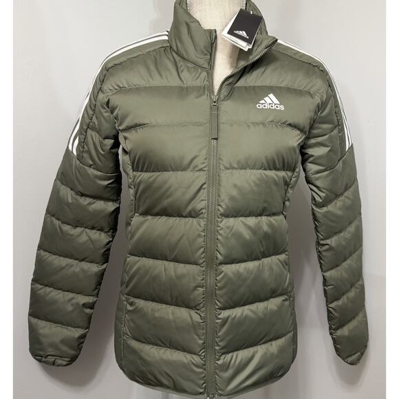 NEW adidas Women's Olive/White Essential 3-Stripe Light Down Jacket Coat Size XS