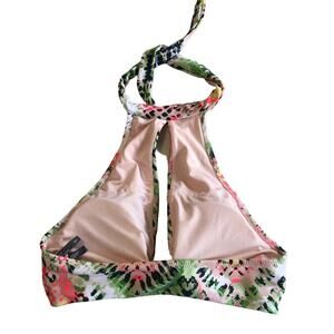 NEW aerie cut out pink green halter geometric pattern bikini top retro style Med