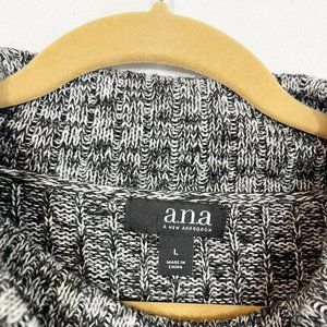 NEW ana Gray & Blacked Marled Ribbed Knit Foldover Midi Sweater Dress - LARGE