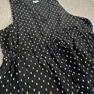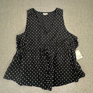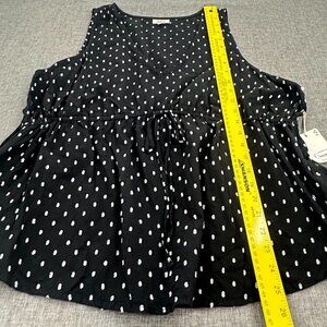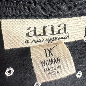 NEW! a.na New Approach Baby Doll Top Black White V-Neck 1X Cotton $37 Drawstring