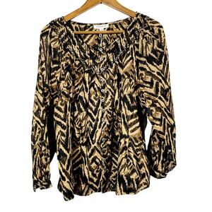 NEW! beach lunch lounge Animal Print Scoop Neck Tunic Blouse Top Long Sleeve- XS