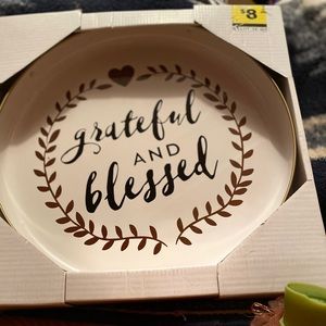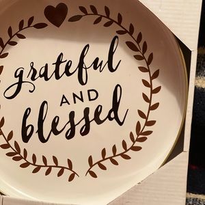 It’s is a very beautiful light weight metal sign with grateful and blessed in black writing with a gold accent design around it. It’s is new still in the box.