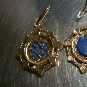 Really pretty and unusual yellow goldtone earrings in an open medallion setting