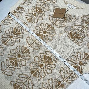 NEW blu pepper Sleeveless Sweater Vest Floral Pattern Sz Large Knit Beige Tan
