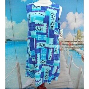 NEW by L.A.N.Y, SLEEVELESS DRESS,BLUE MULTI-COLOR PLUS SIZE 1X (MADE IN THE USA)